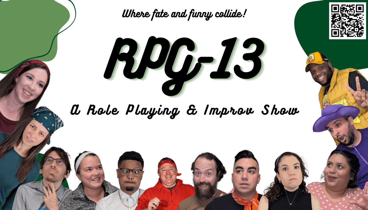 Hello Travelers! Welcome to RPG-13, the comedy company that combines role playing games with improvisation: where fate and funny collide! Join our Tavern Keeper, as they invite a volunteer from the audience onstage (maybe you!), and will help you create your very own role playing adventure! With the help of our Game Master and company of Adventurers, you will create your character, pick which Adventurer will play your character, and discover the location and genre of your adventure. However, as the story unfolds, the random roll of the dice will be the deciding factor on how well everything goes. Roll a 20, a glorious success! Roll a 1, a hilarious disaster! Join us to create your adventure onstage, where you and the roll of the dice have all the possibilities!