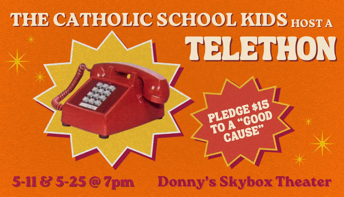 The Catholic School Kids return with a telethon full of sketches, characters, and maybe even puppets in support of a totally not-fake cause.